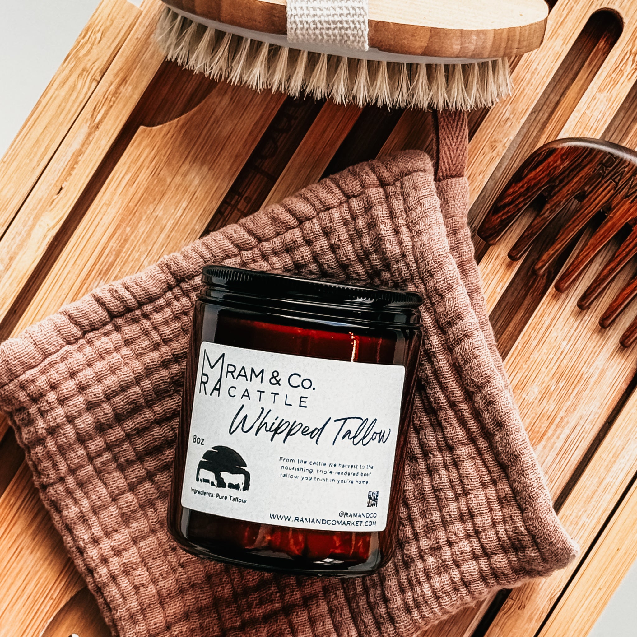 Our pure + clean whipped Tallow Balm is from right here on the ranch at RAM and Co. Ranch raised & rendered by us from start to finish! Forget the toxic chemicals, fillers, PUFA's, fragrances and other toxins that are harmful to our bodies. Let's bring it back to our ancestors with simple, clean products that nourish our skin.
